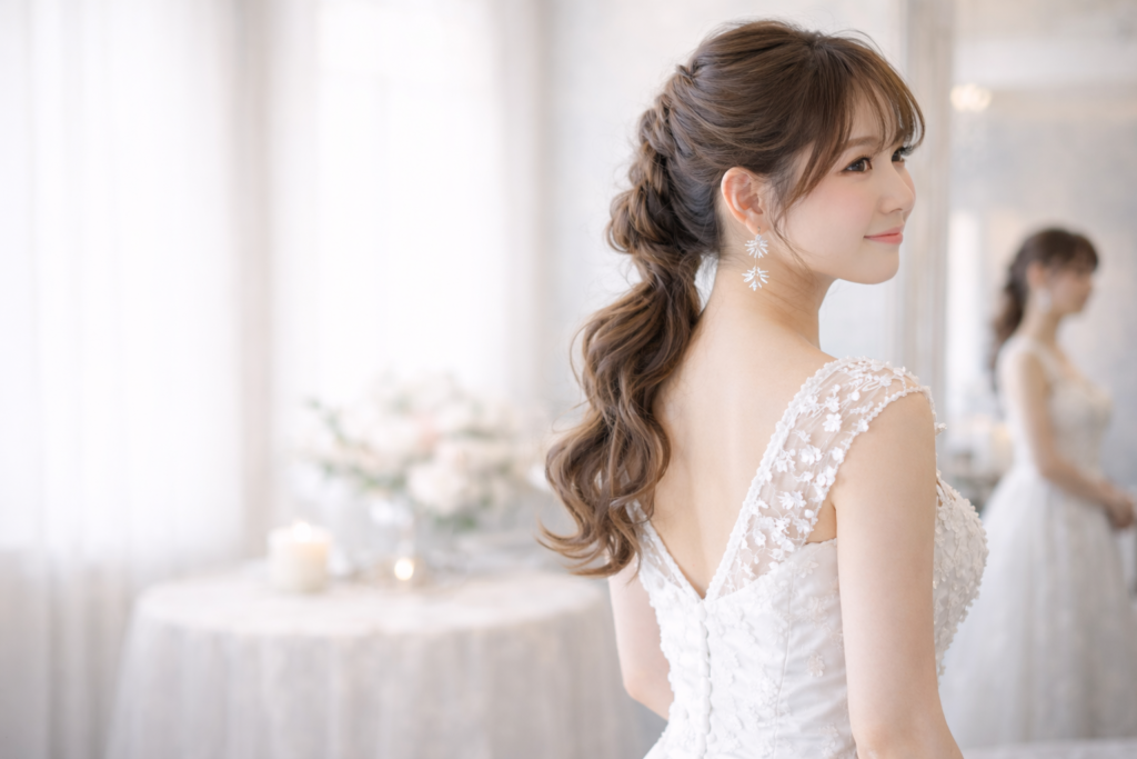 正面だけではなくいろんな角度から見られる花嫁はトータルのバランスがとても大切です。
