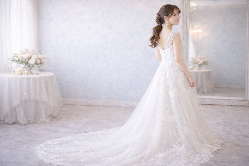 どの角度から見ても美しいドレス姿に